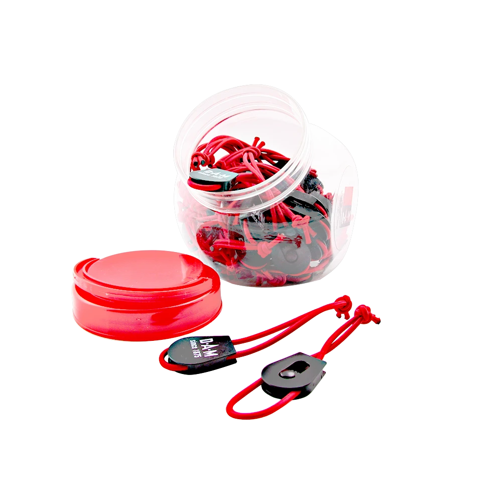 Elastische staafbanden met het elegante DAM-logo om snel en praktisch de hengel delen bij aan elkaar te bevestigen.
